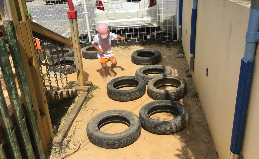 今回はタイヤを活用した遊びを紹介させていただきます。