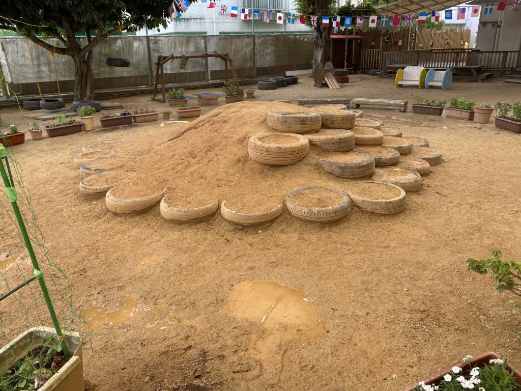 3時間という短い時間でしたが、保育者さんの力で多機能な土山、泥んこ場・小上がりができました。