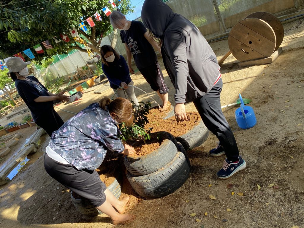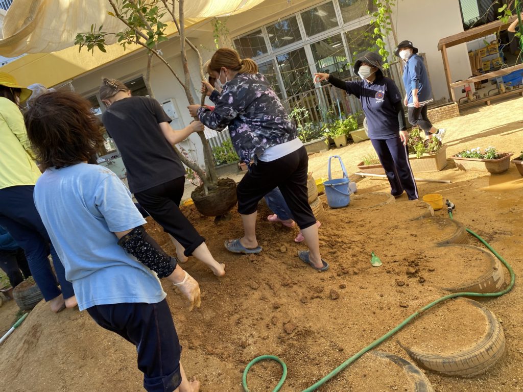 先日、八重瀬町にあるのびる保育園にて、園庭の整備を行いました。