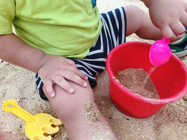 ただし、砂遊びに慣れていない場合は、砂の感触を嫌がることがあります。その場合は、保護者の方が「サラサラしているね」「ご飯を作ろうね」など良い情報を言葉に出して、遊ぶ姿を見せるようにすると安心するようになります。