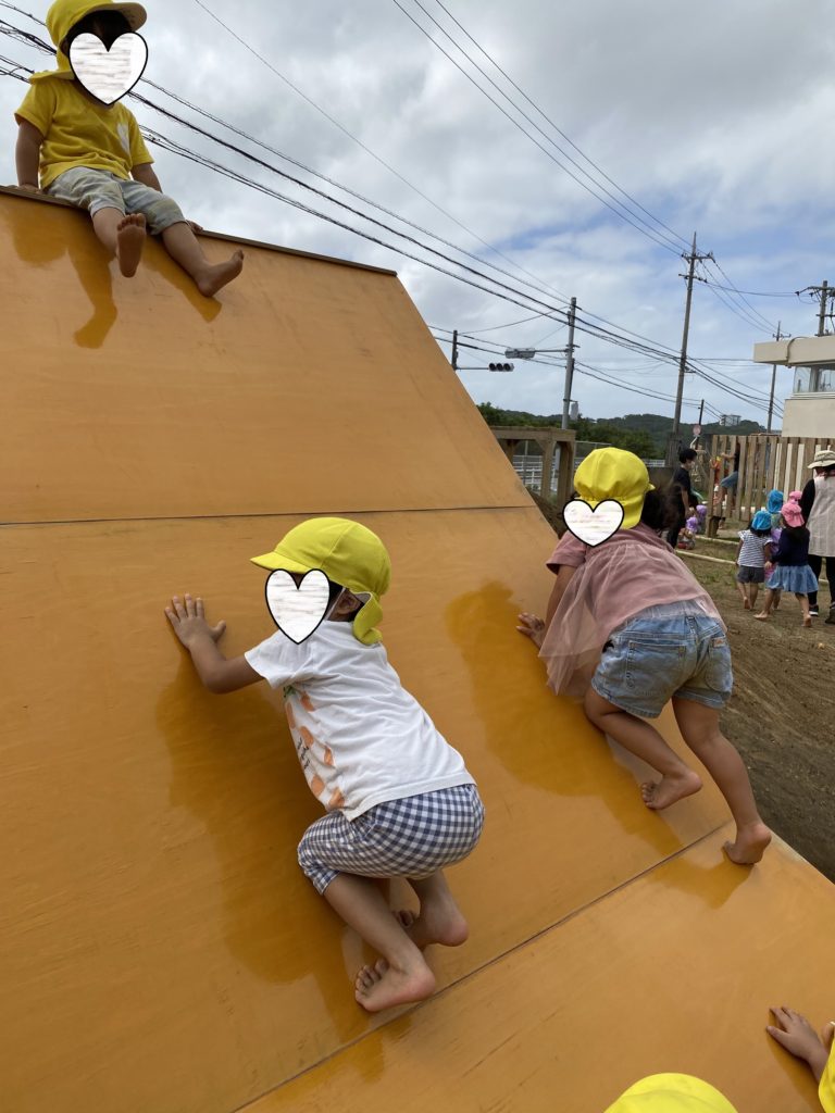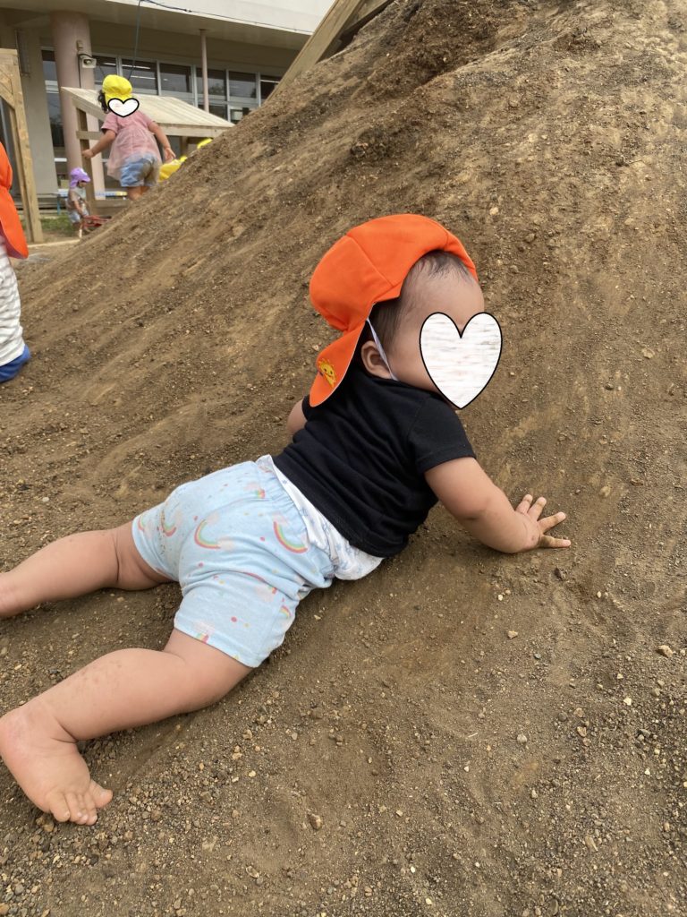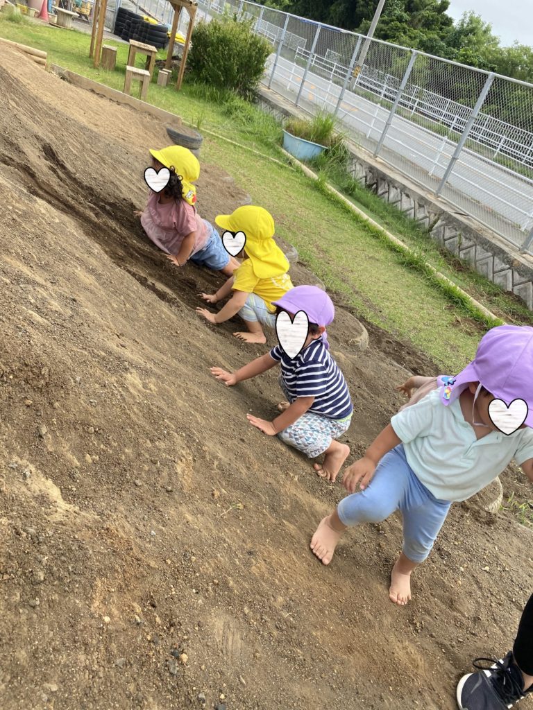 先日、豊見城市にあるつぼみ事業所内保育園の方より、姉妹園である長嶺こども園の築山に0歳児~2歳児クラスを連れて行った際のお話してくれました。かなり急な山登りと斜面滑り、斜面のぼりをやったとのことでした。