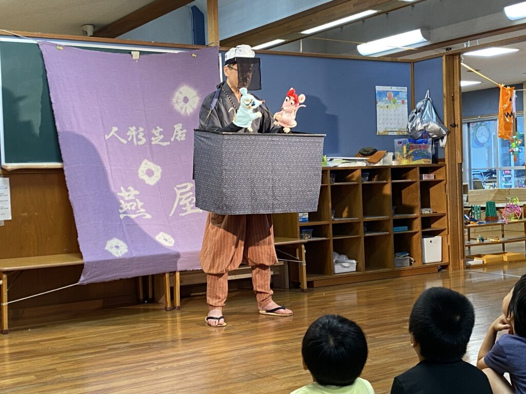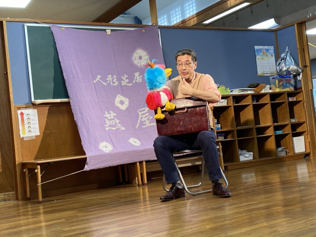 11月の中旬より長野県を拠点として活動をしている人形芝居燕屋のくすのき燕氏が沖縄県の保育施設に来園しました。