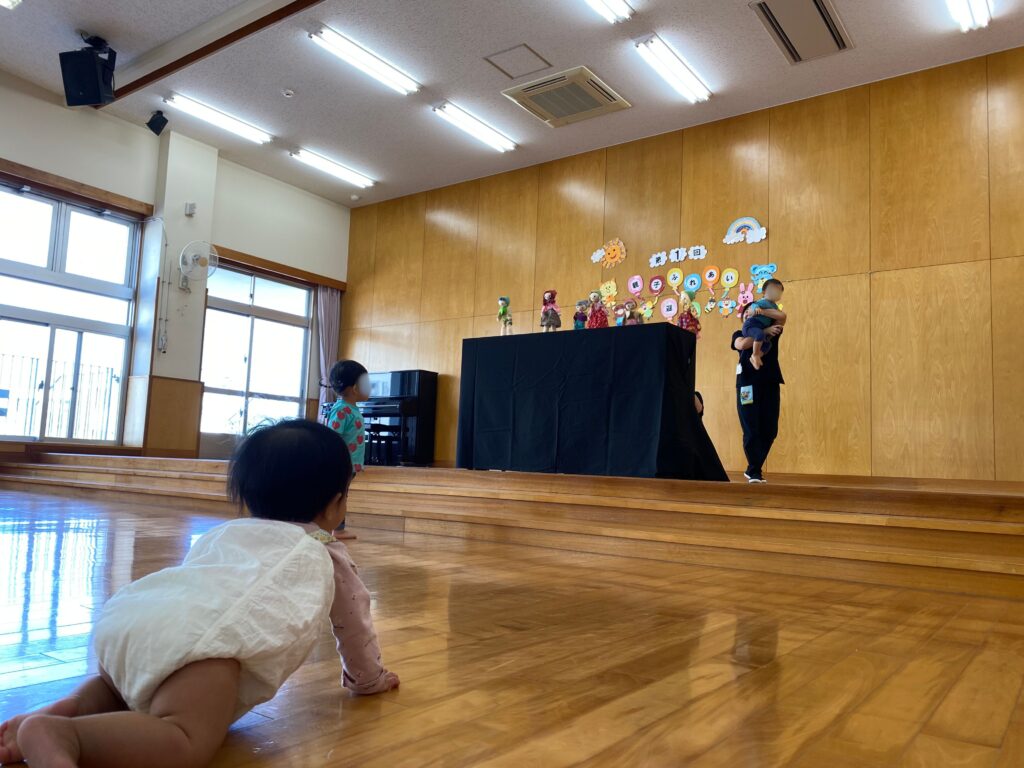 抱っこの状態から逆さになり、いつもと異なる視点を味わったり、大人の身体でお舟のように移動したり、01歳児と2歳児以降の2部に分かれて行いました。