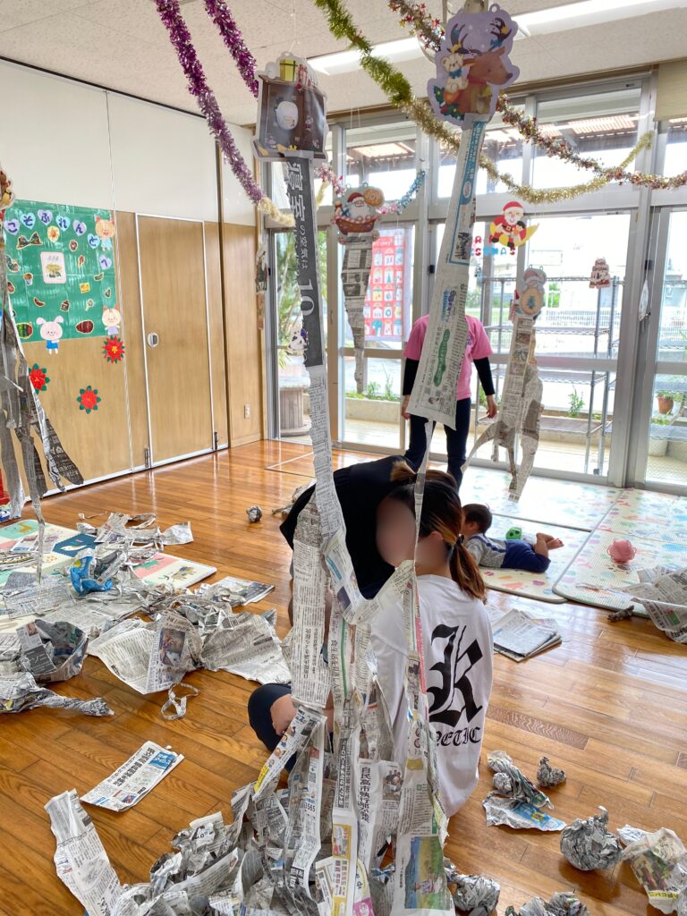 子育て支援センター「ふれんど」では、新聞紙を使った活動を行いました。
