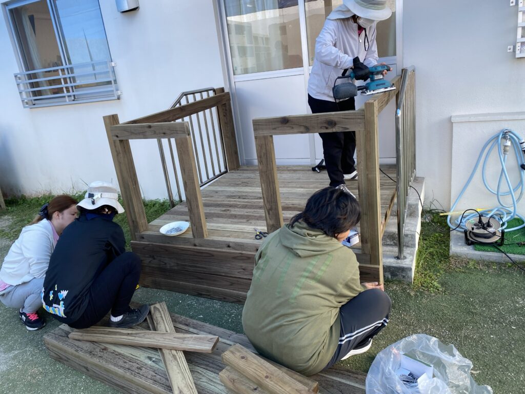 保育室から園庭へ出るためにはコンクリートの階段を使う必要があるのですが、段差が狭く、保育者の声掛けや介助が増えすぎてしまうという課題がありました。
